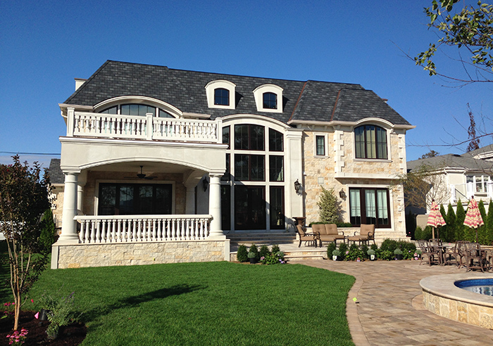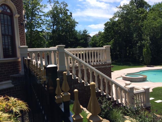 Concrete balusters look amazing on 2nd floor balconies. Bottom rail needed to meet code.